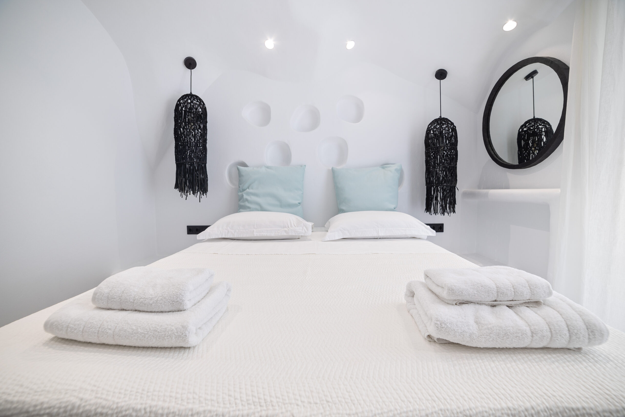 Inspired by the timeless strength of stone, this intimate cave retreat embodies the calm simplicity of the Cyclades. Smooth white walls, organic curves, and built-in details evoke a feeling of grounding and peace — a modern echo of ancient craftsmanship.